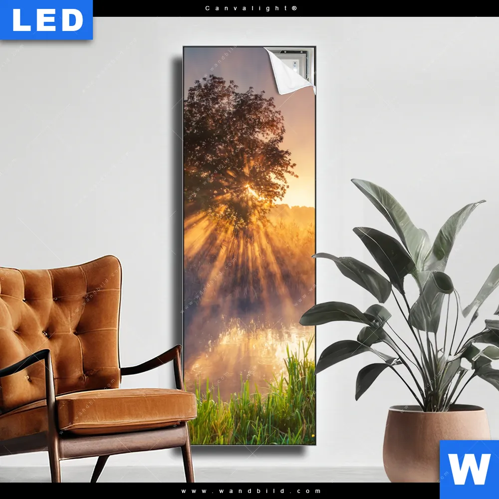 Canvalight® TEX Leuchtbild | Nebel am Fluss | Schmal