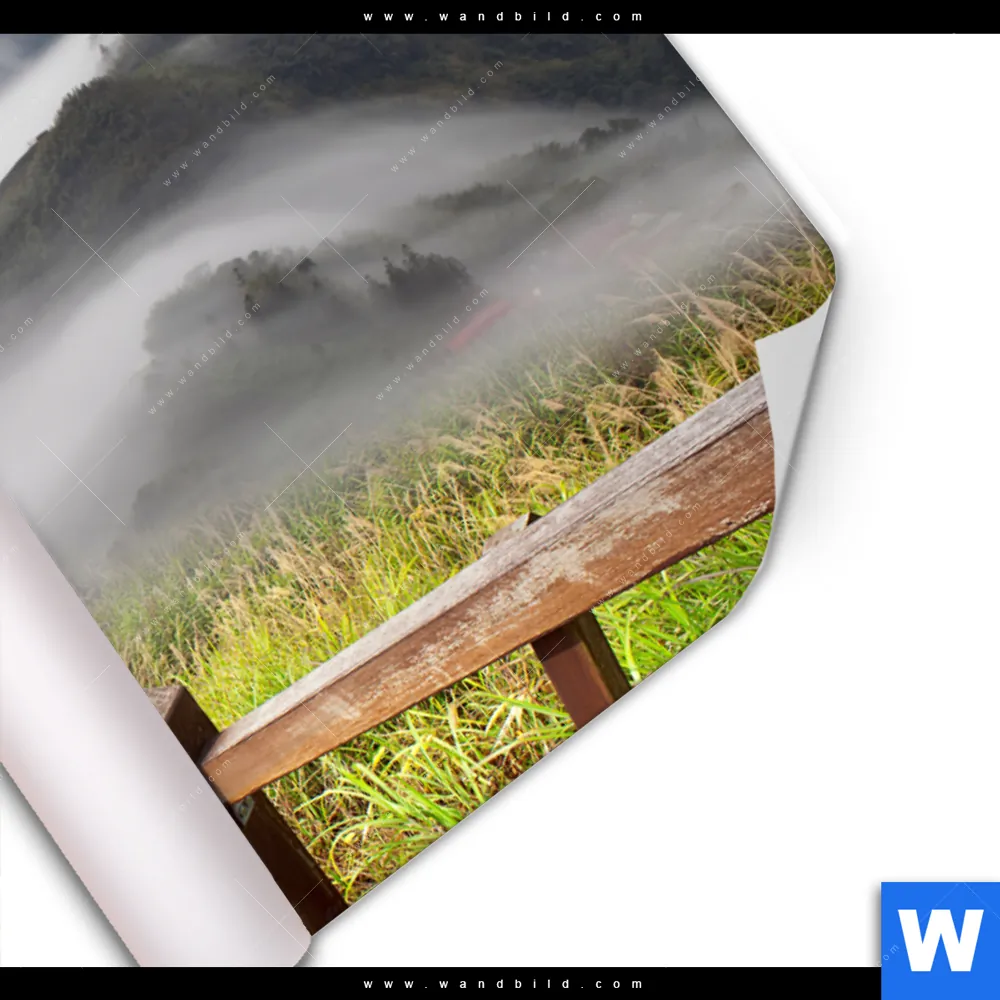 Poster | Holztreppe auf Berg mit Wolken | Querformat