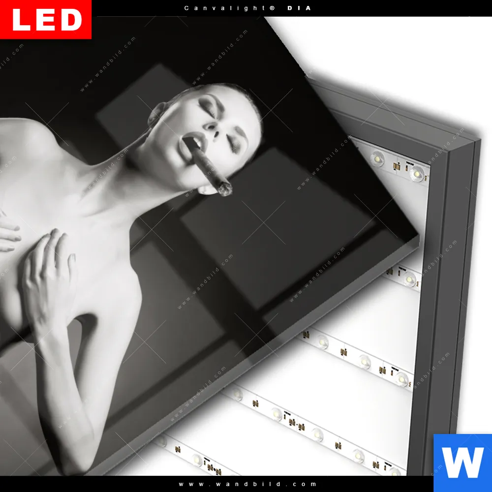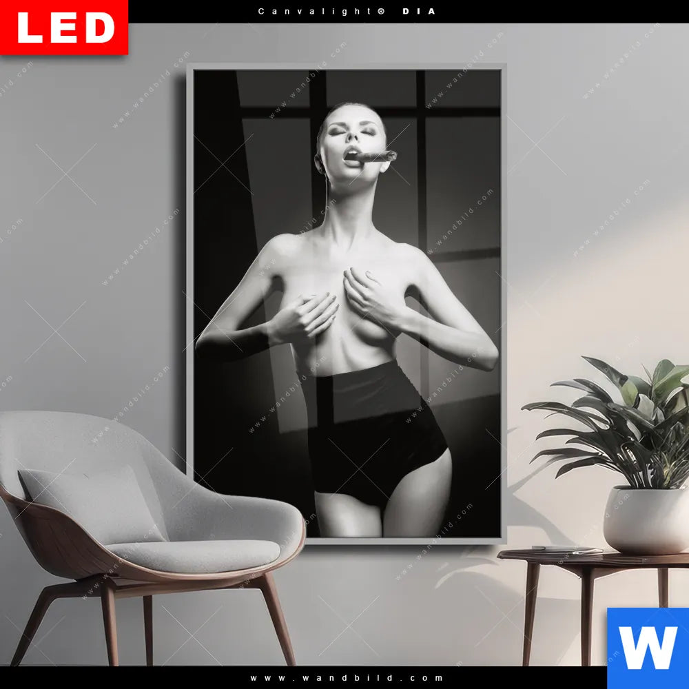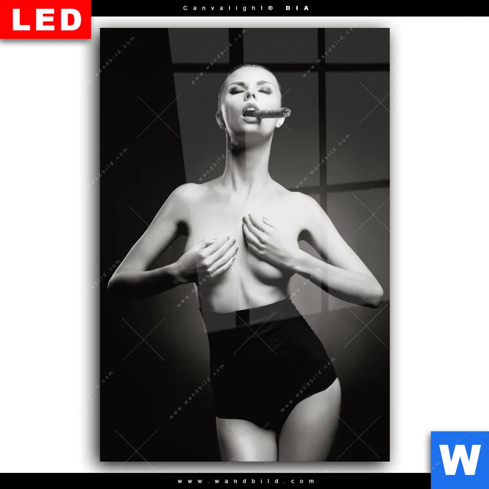 Wechselmotiv Acrylglas Canvalight® DIA | Dame mit Zigarre | Hochformat