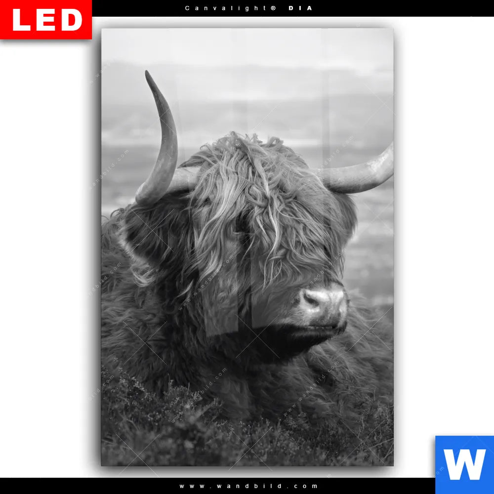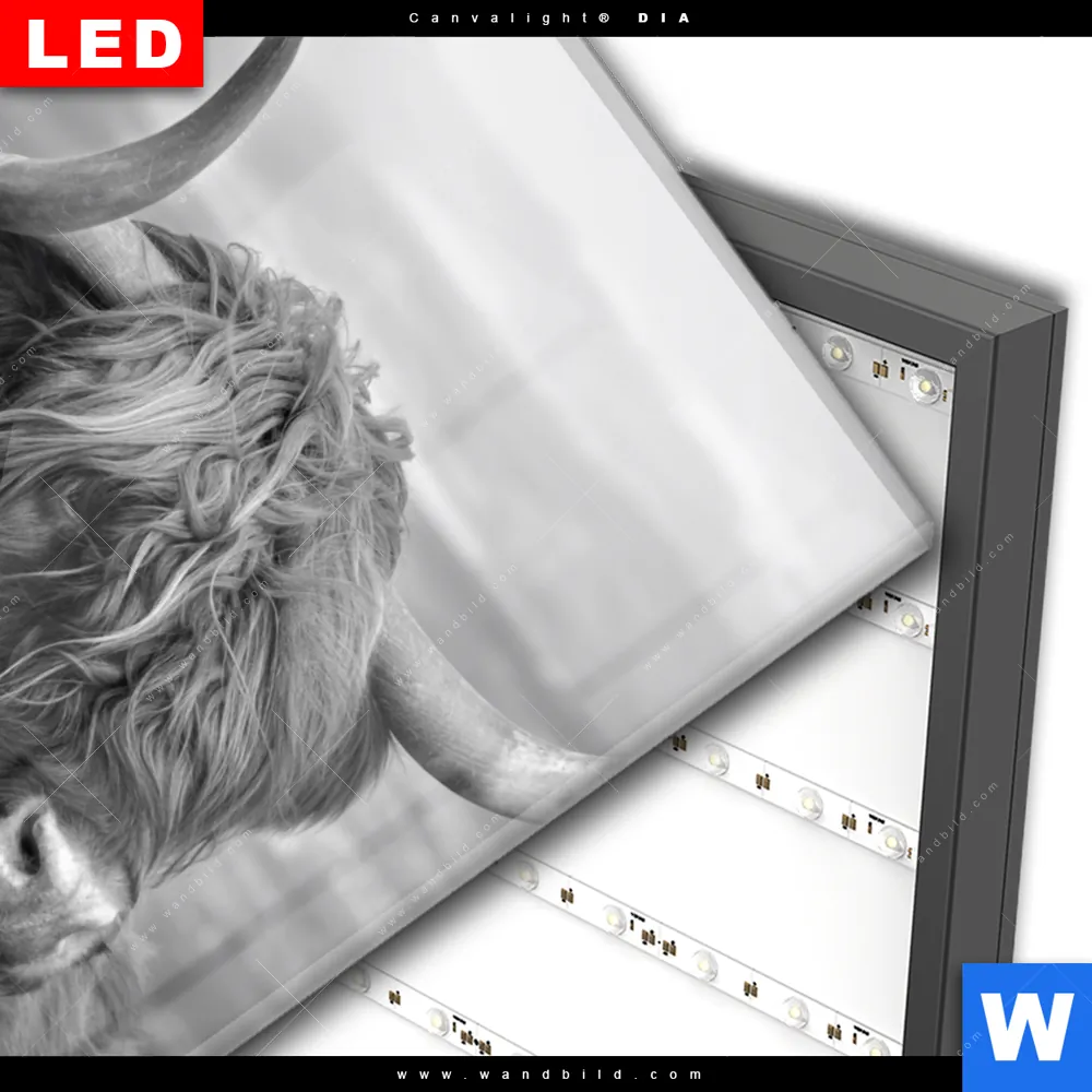 Wechselmotiv Acrylglas Canvalight® DIA | Hochland-Rind Schwarz-Weiß No. 2 | Hochformat