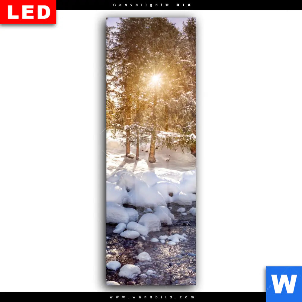 Wechselmotiv Acrylglas Canvalight® DIA | Schneebedeckte Landschaft am Fluss | Schmal