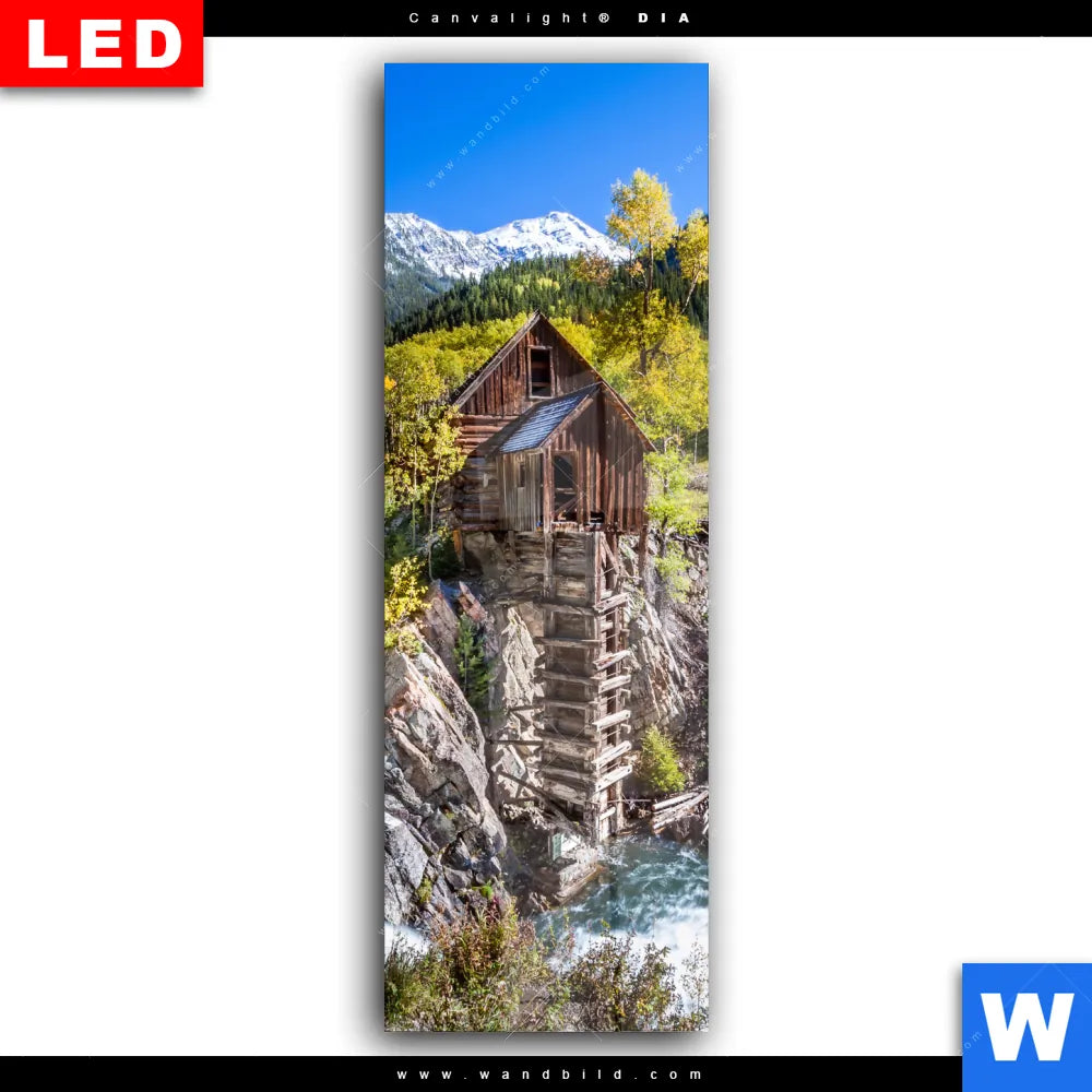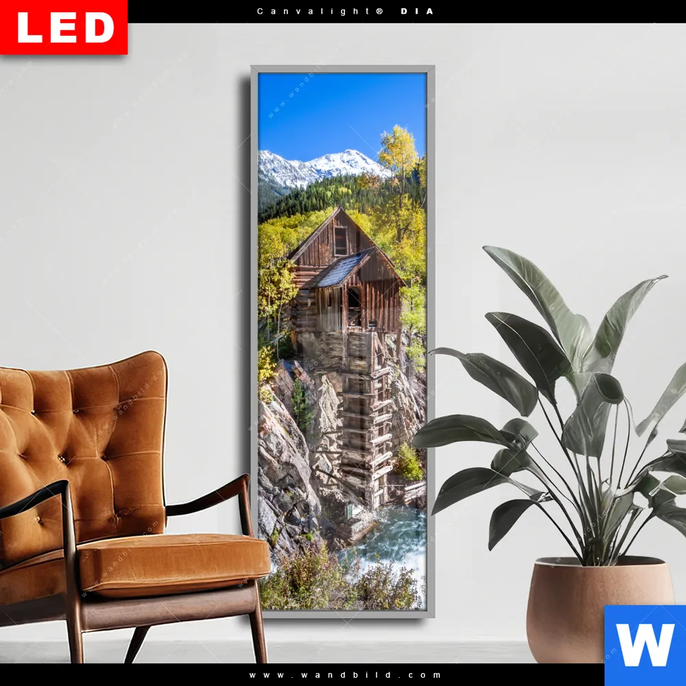 Wechselmotiv Acrylglas Canvalight® DIA | Waldhütte am Fluss | Schmal
