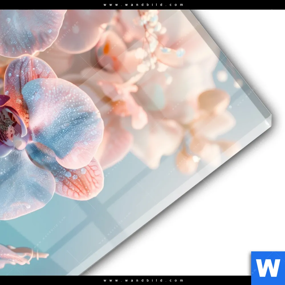 Acrylglasbild | Orchideenblüten in Pastell | Hochformat