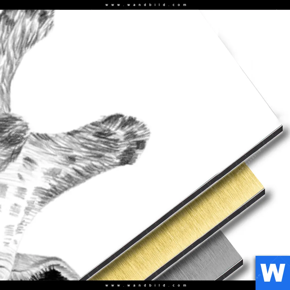 Aluminiumbild gebürstet | Bleistiftzeichnung Giraffe | Schmal