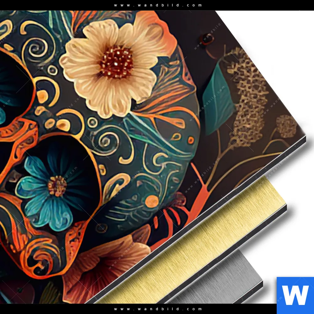 Aluminiumbild gebürstet | Blumenschädel schwarz | Hochformat