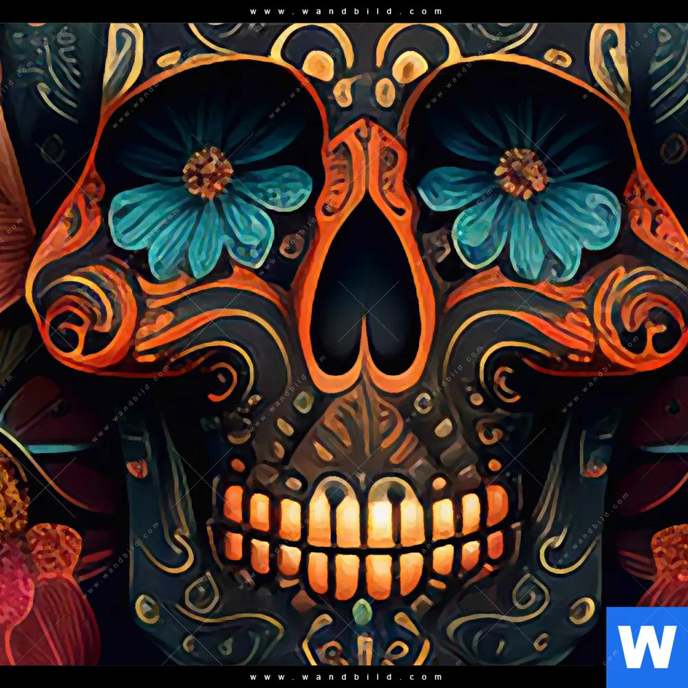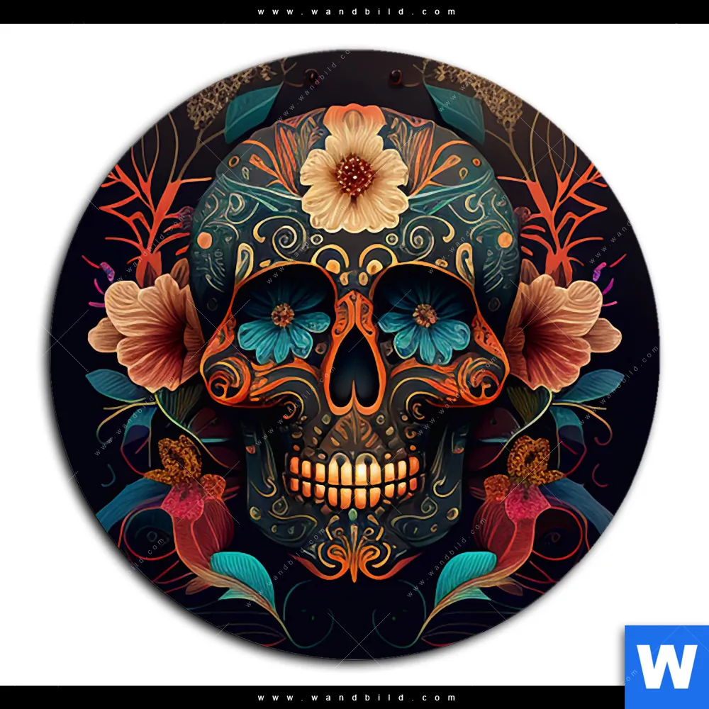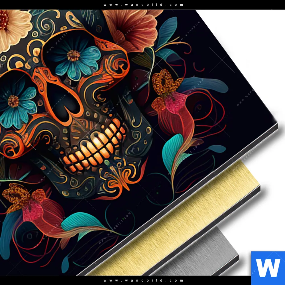 Aluminiumbild gebürstet | Blumenschädel schwarz | Rund