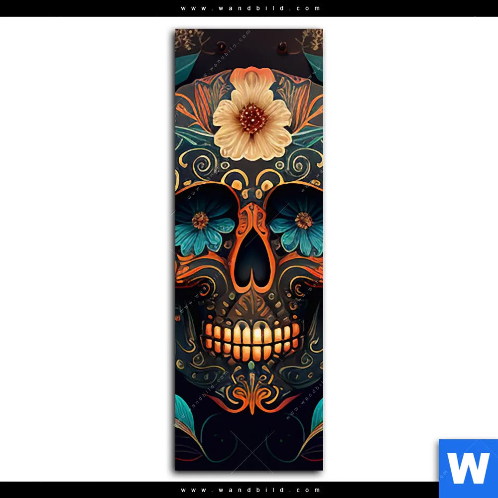 Aluminiumbild gebürstet | Blumenschädel schwarz | Schmal