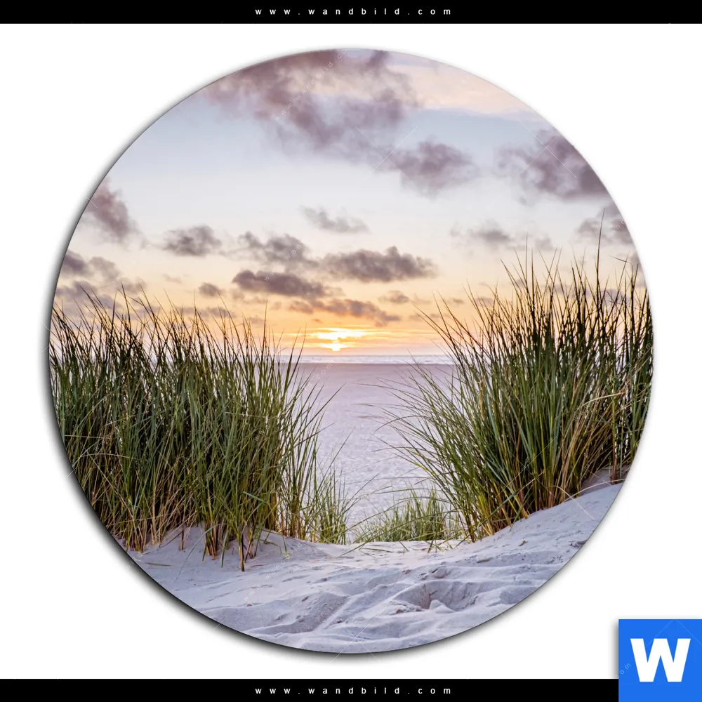 Aluminiumbild gebürstet | Dünen und Abendsonne | Rund