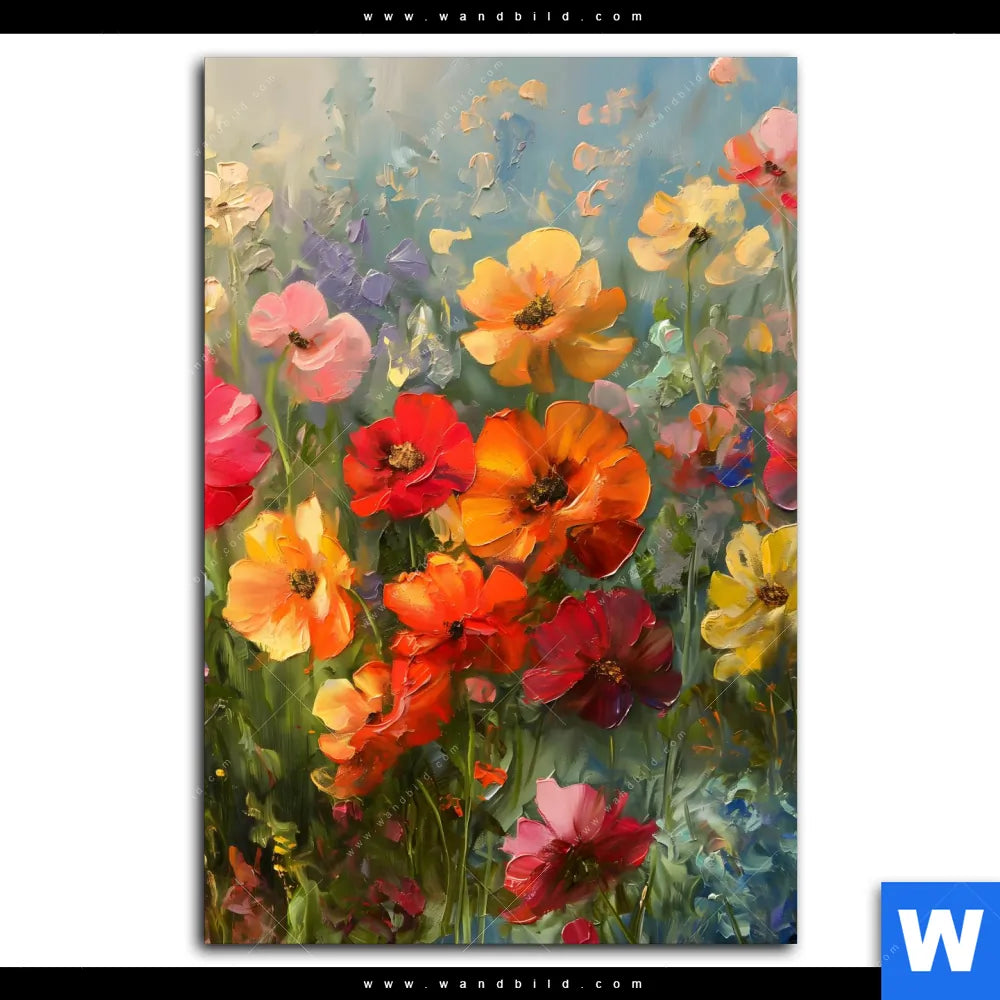 Aluminiumbild gebürstet | Leuchtende Frühlingsblumen | Hochformat