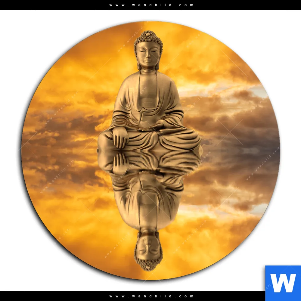 Aluminiumbild gebürstet | Meditierender Buddha am See | Rund