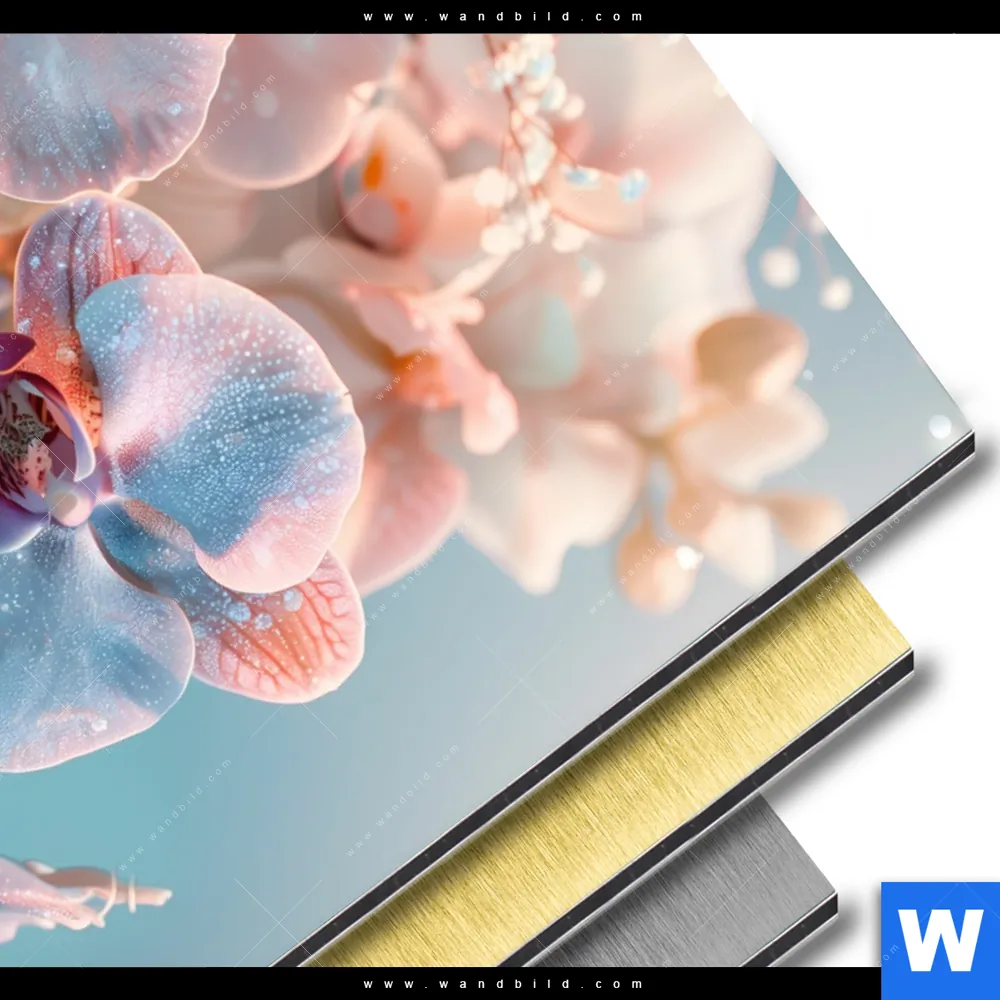 Aluminiumbild gebürstet | Orchideenblüten in Pastell | Hochformat