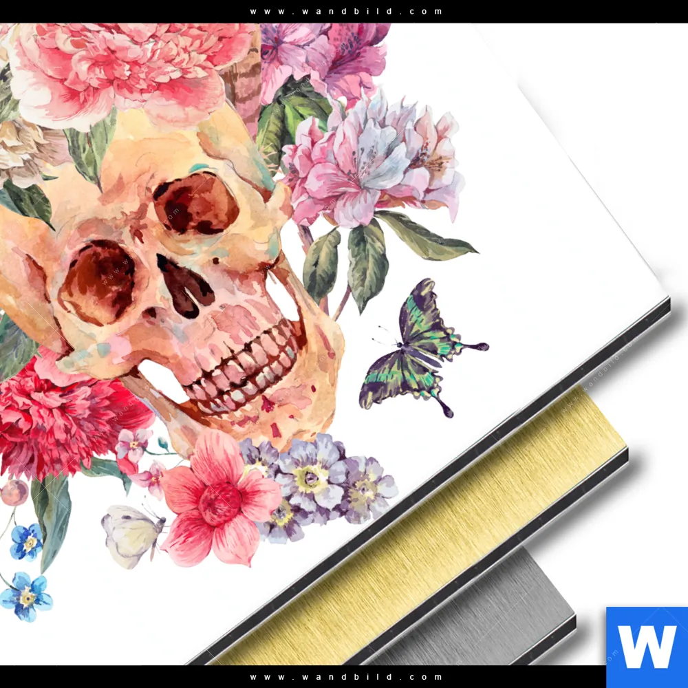 Aluminiumbild gebürstet | Schädel im Boho Stil | Rund