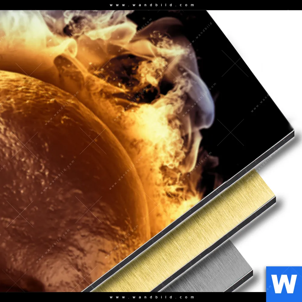 Aluminiumbild gebürstet | Schädel in Flammen | Schmal