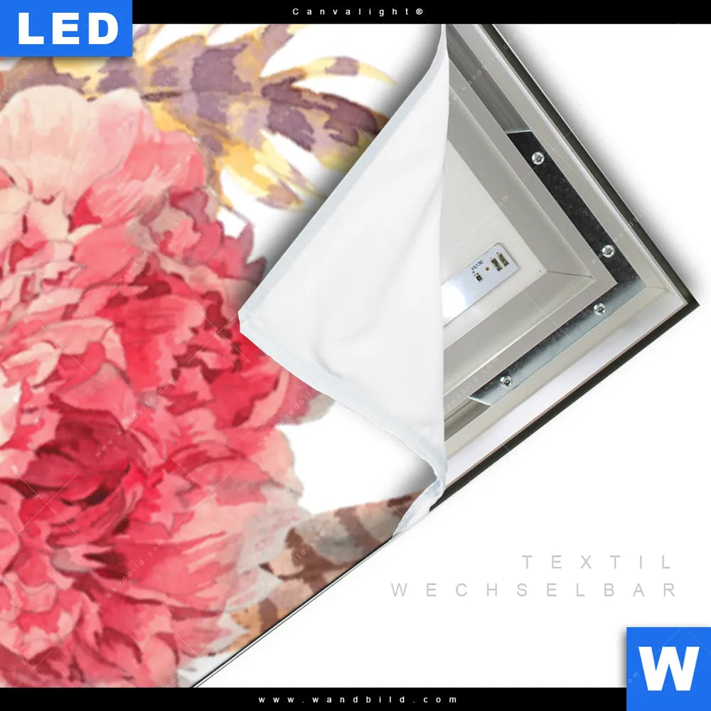 LED-Textilrahmen-Bild mit austauschbarem Blumen - Botanik, Porträts - Menschen Textil-Druck (Wechselbild)