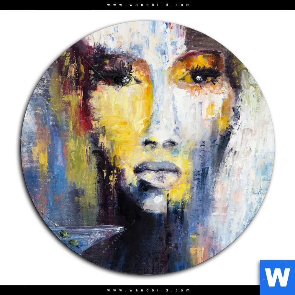 Aluminiumbild gebürstet | Frau & Martini Cocktail | Rund