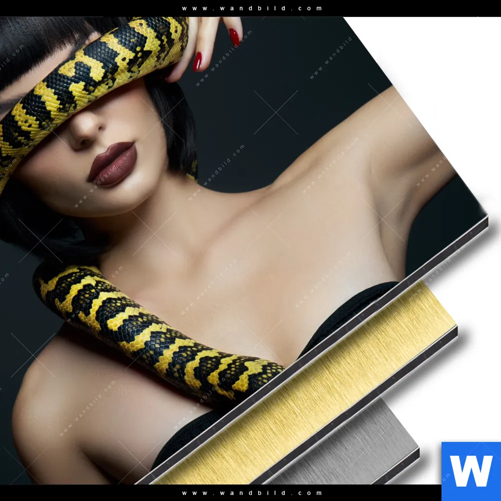 Aluminiumbild gebürstet | Frau mit gelber Schlange | Quadrat