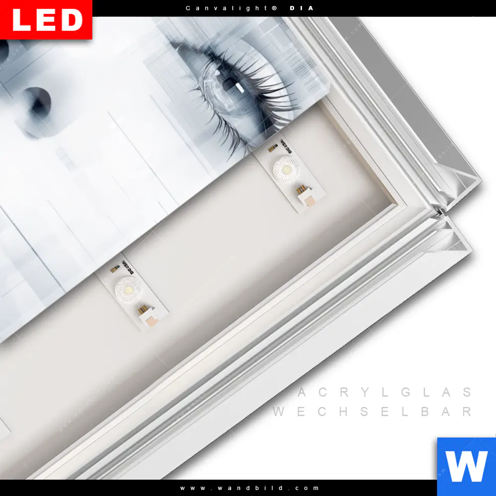 LED-Glasbild mit austauschbarem Acrylglas-Druck (Wechselbild)