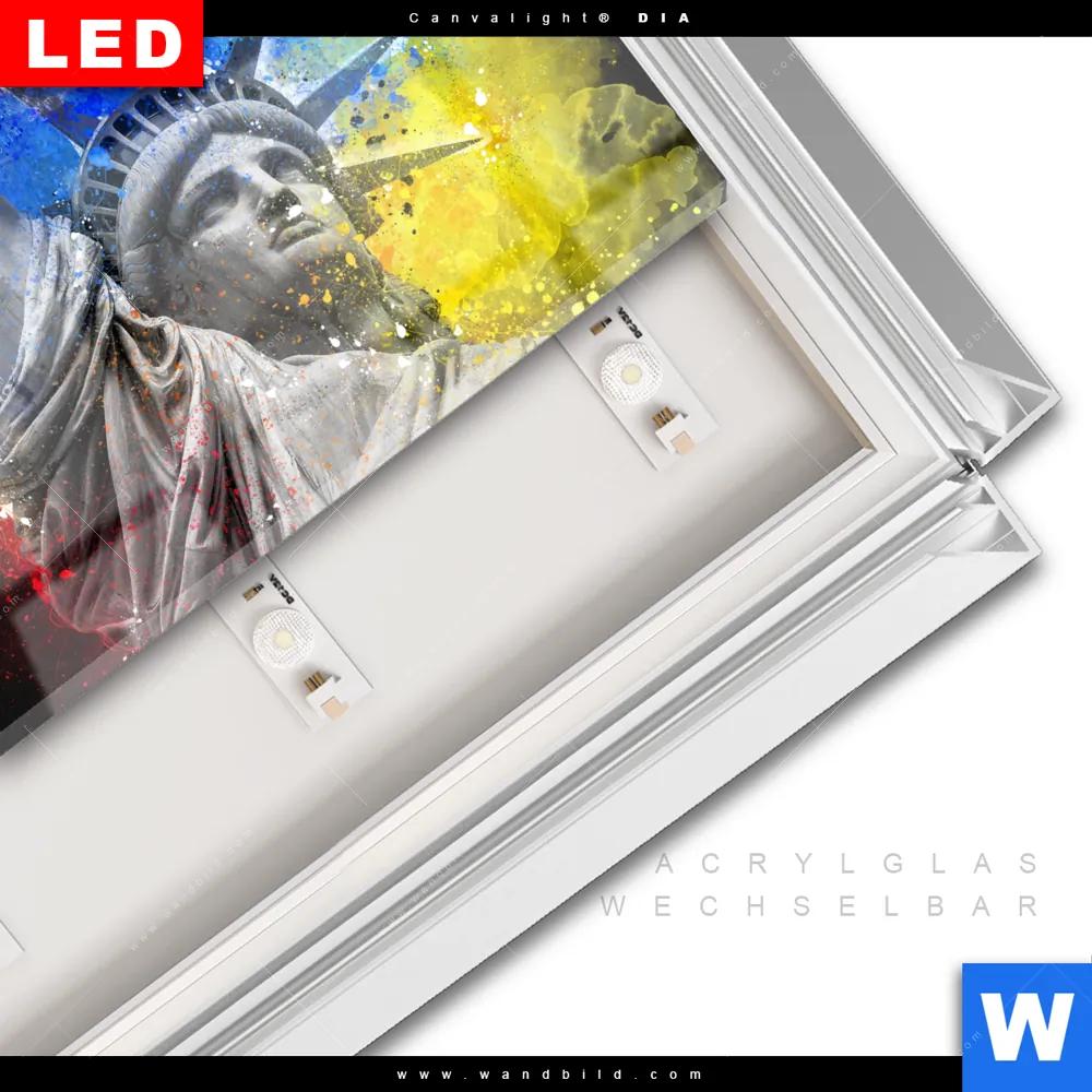 LED-Glasbild mit austauschbarem Acrylglas-Druck (Wechselbild)