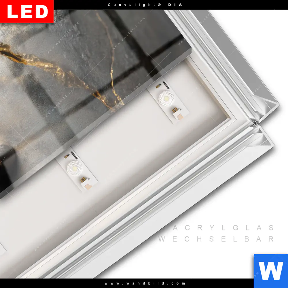 LED-Glasbild mit austauschbarem Acrylglas-Druck (Wechselbild)