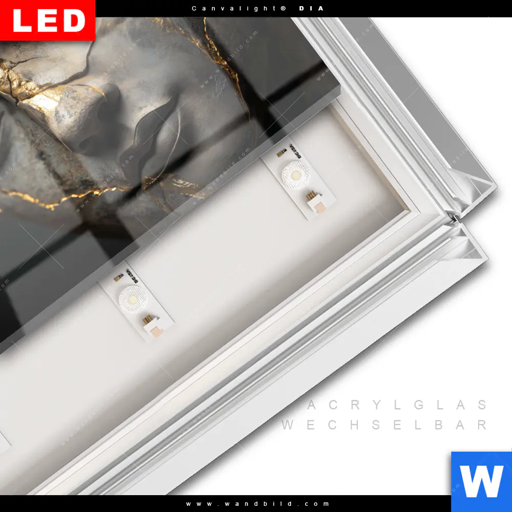 LED-Glasbild mit austauschbarem Acrylglas-Druck (Wechselbild)