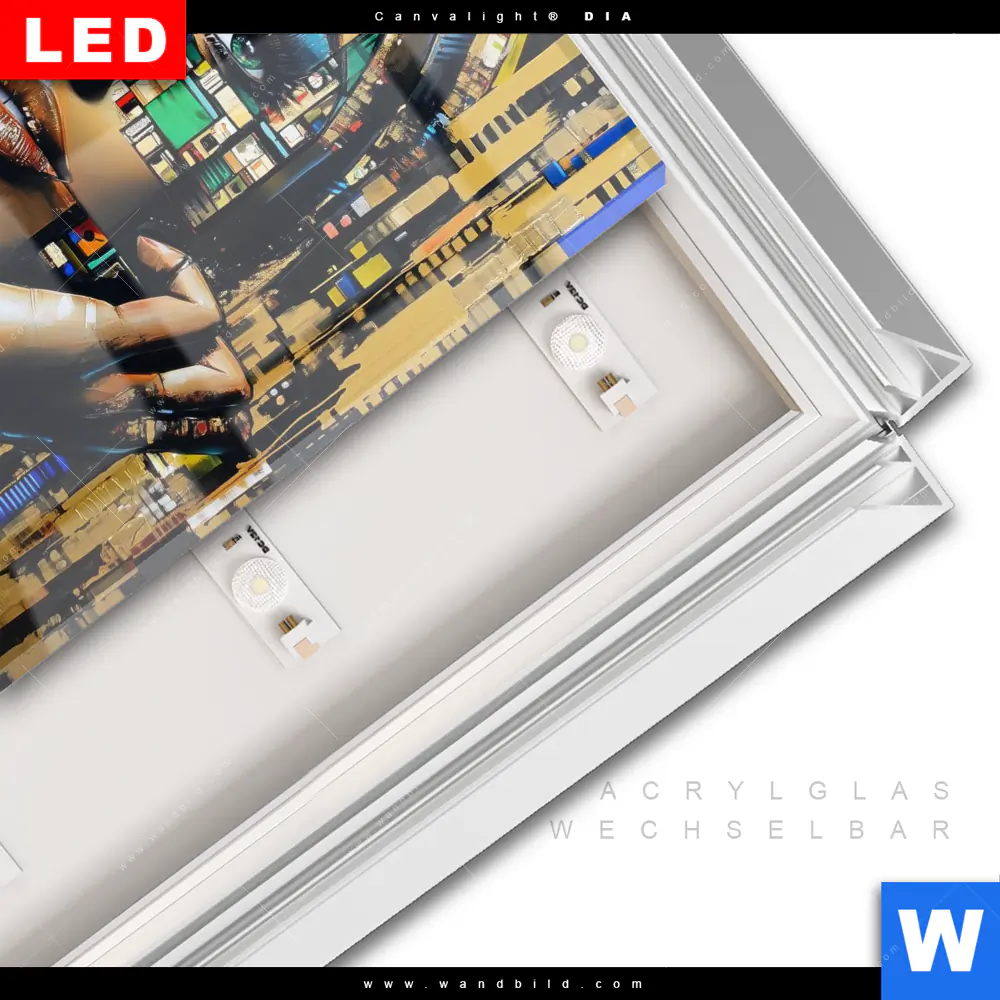 LED-Glasbild mit austauschbarem Acrylglas-Druck (Wechselbild)