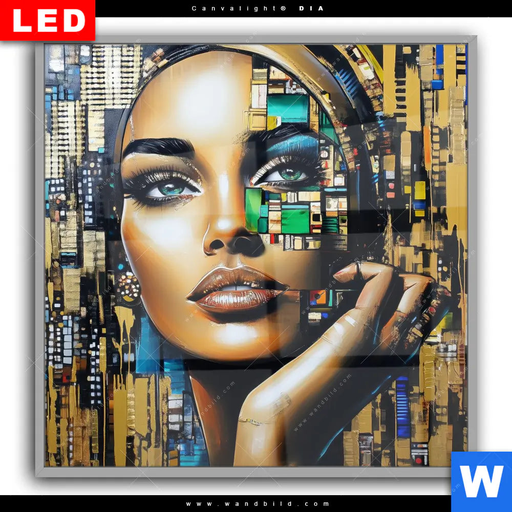 Canvalight® DIA Leuchtbild | Zoe - Mosaikgesicht im Großstadtlicht | Quadrat
