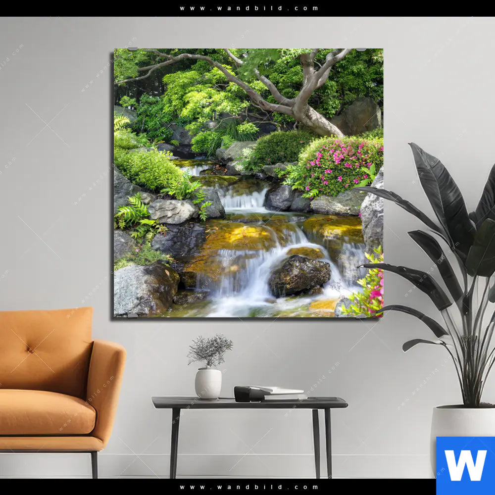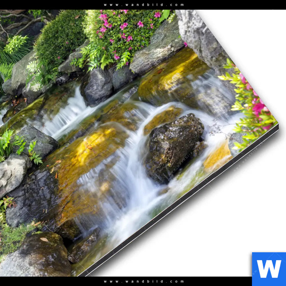 Alu-Dibond Bild | Japanischer Garten mit Wasserlauf | Quadrat