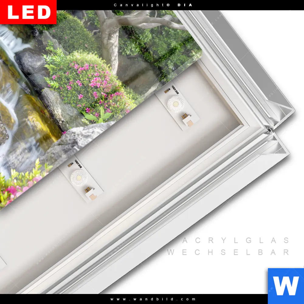 LED-Glasbild mit austauschbarem Acrylglas-Druck (Wechselbild)