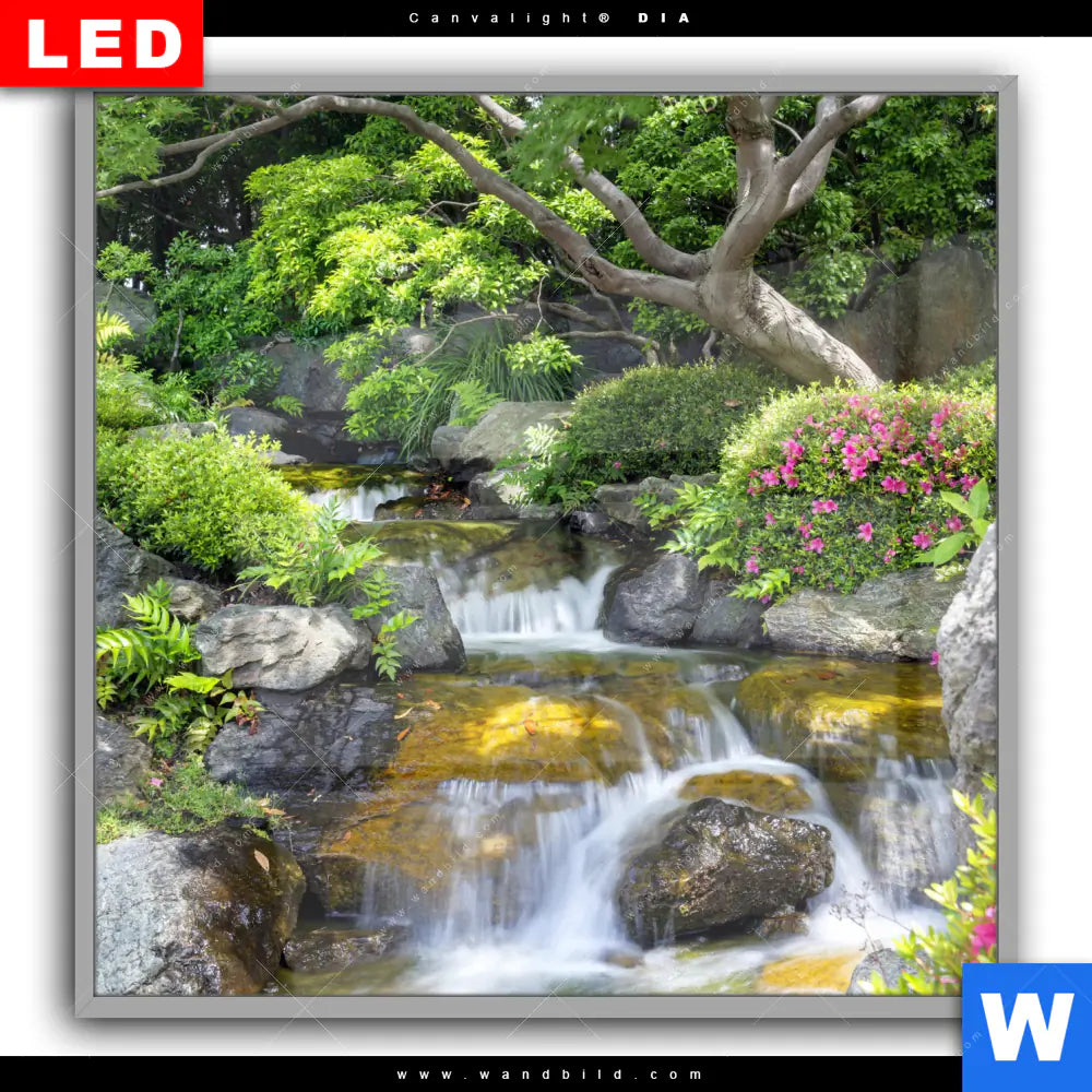 Canvalight® DIA Leuchtbild | Japanischer Garten mit Wasserlauf | Quadrat