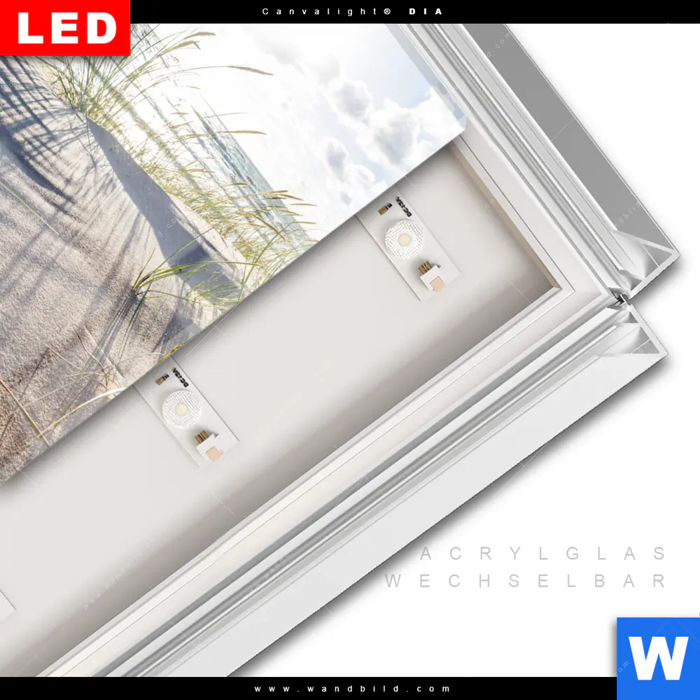 LED-Glasbild mit austauschbarem Acrylglas-Druck (Wechselbild)