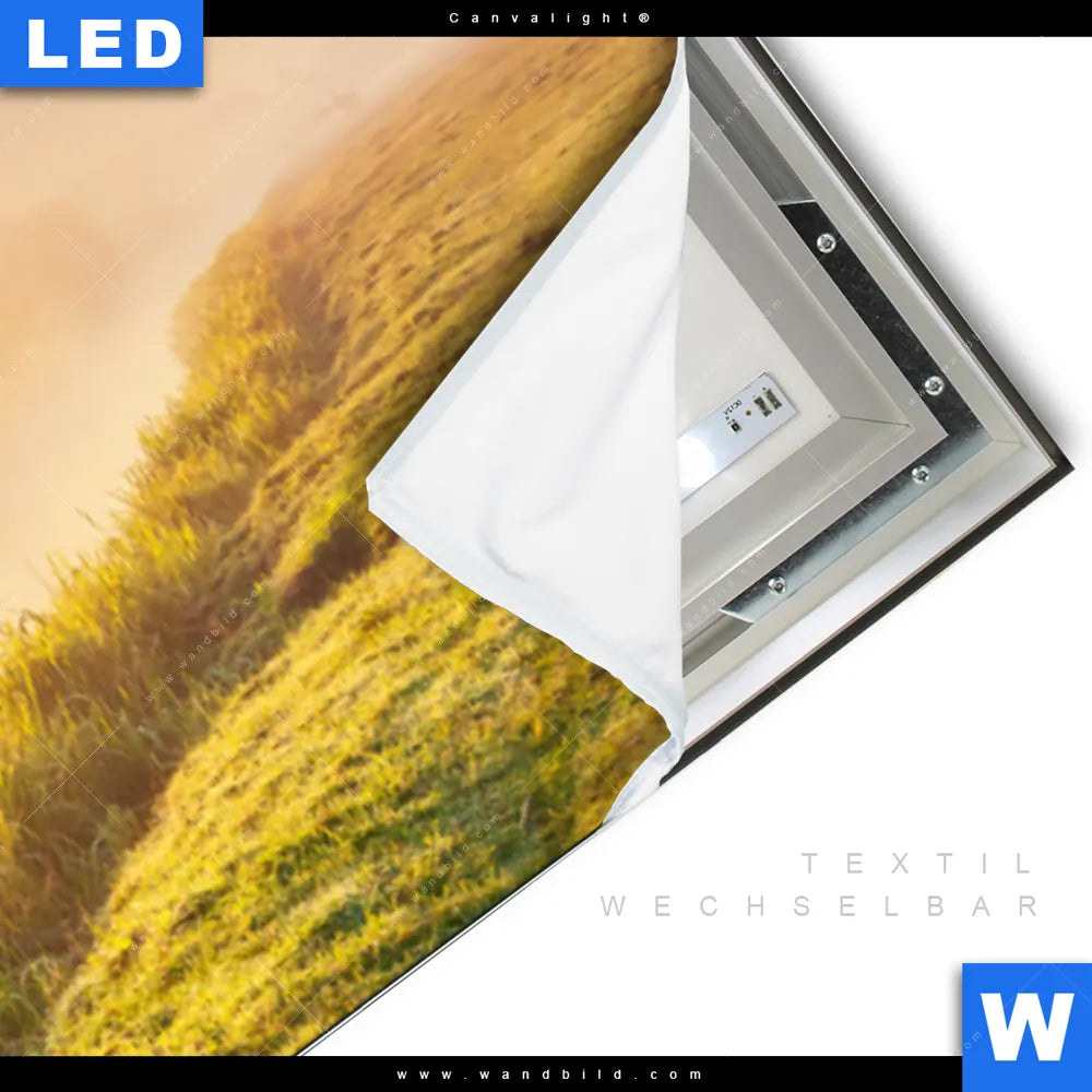 LED-Textilrahmen-Bild mit austauschbarem Landschaften Textil-Druck (Wechselbild)