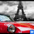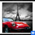 Aluminiumbild gebürstet | Eiffelturm & Rotes Auto | Quadrat