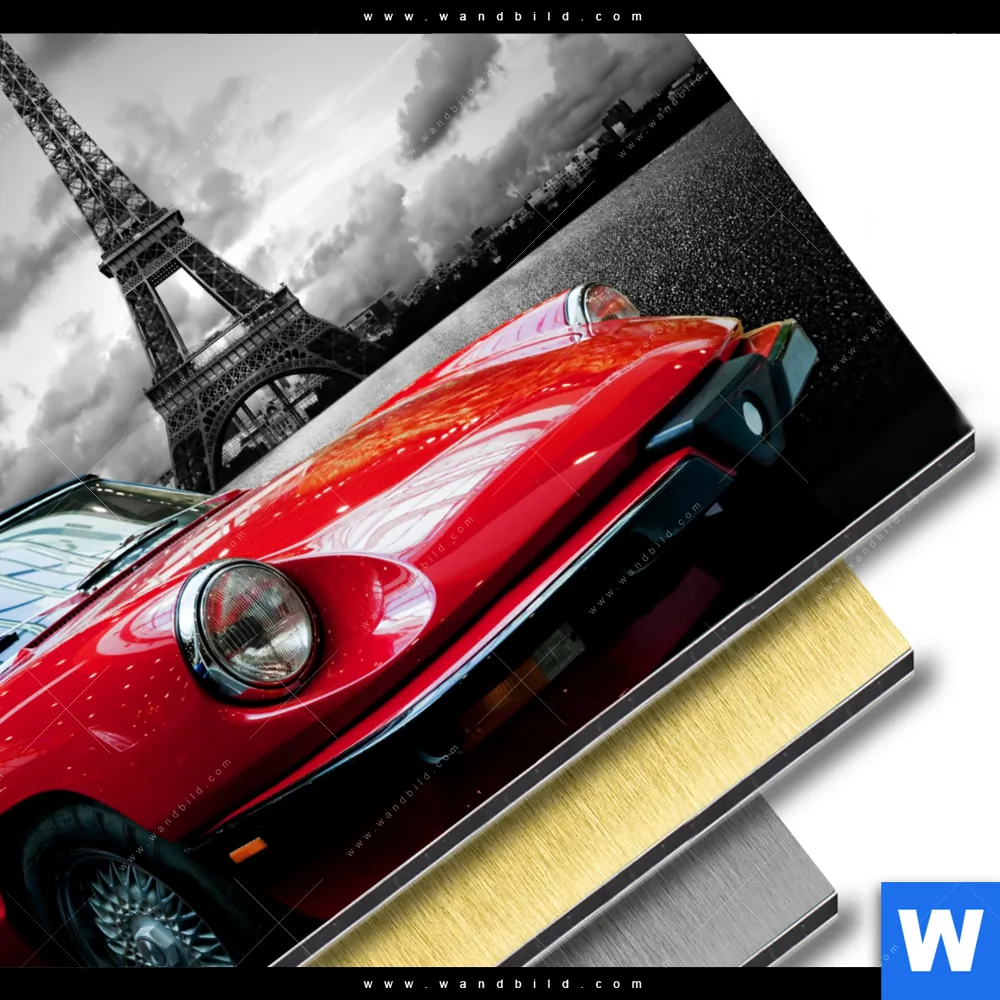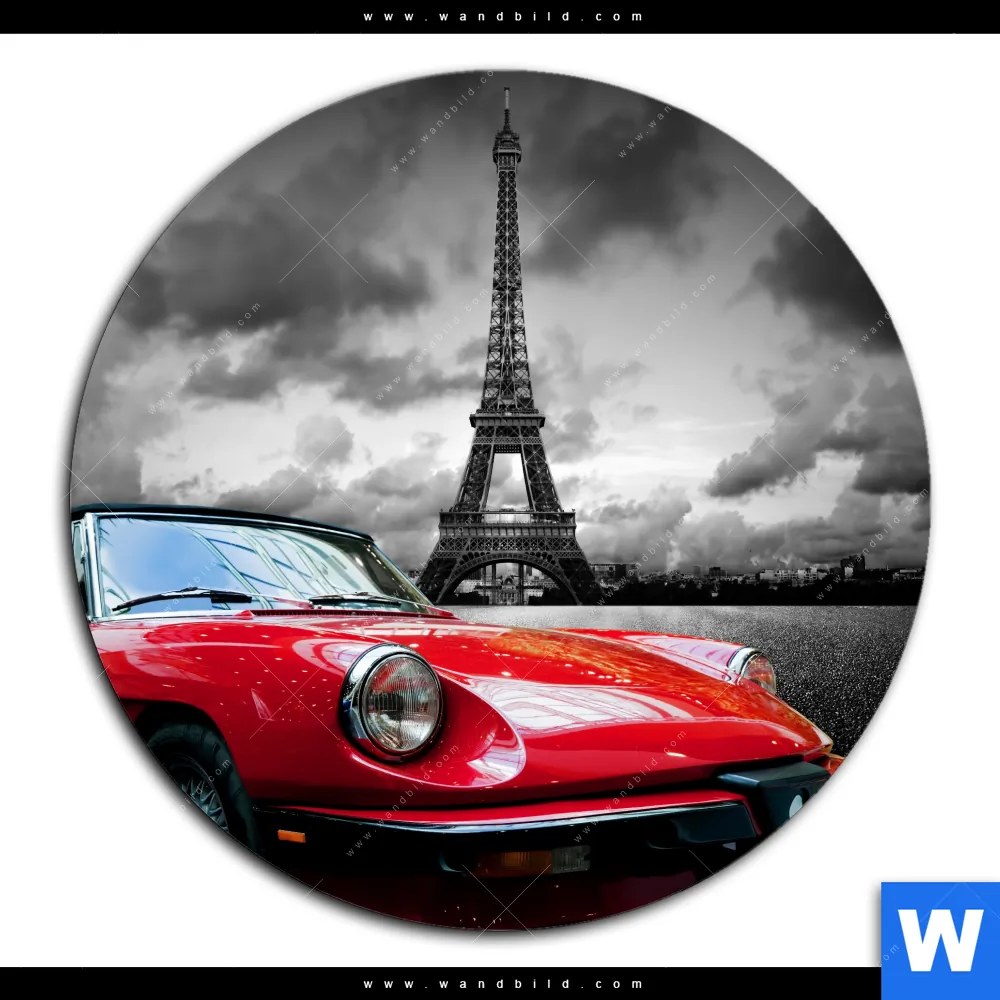 Aluminiumbild gebürstet | Eiffelturm & Rotes Auto | Rund