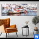 Aluminiumbild gebürstet | Skandinavisches Dorf im Schnee | Schmal