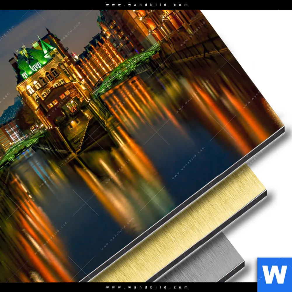 Aluminiumbild gebürstet | Speicherstadt Hamburg | Quadrat
