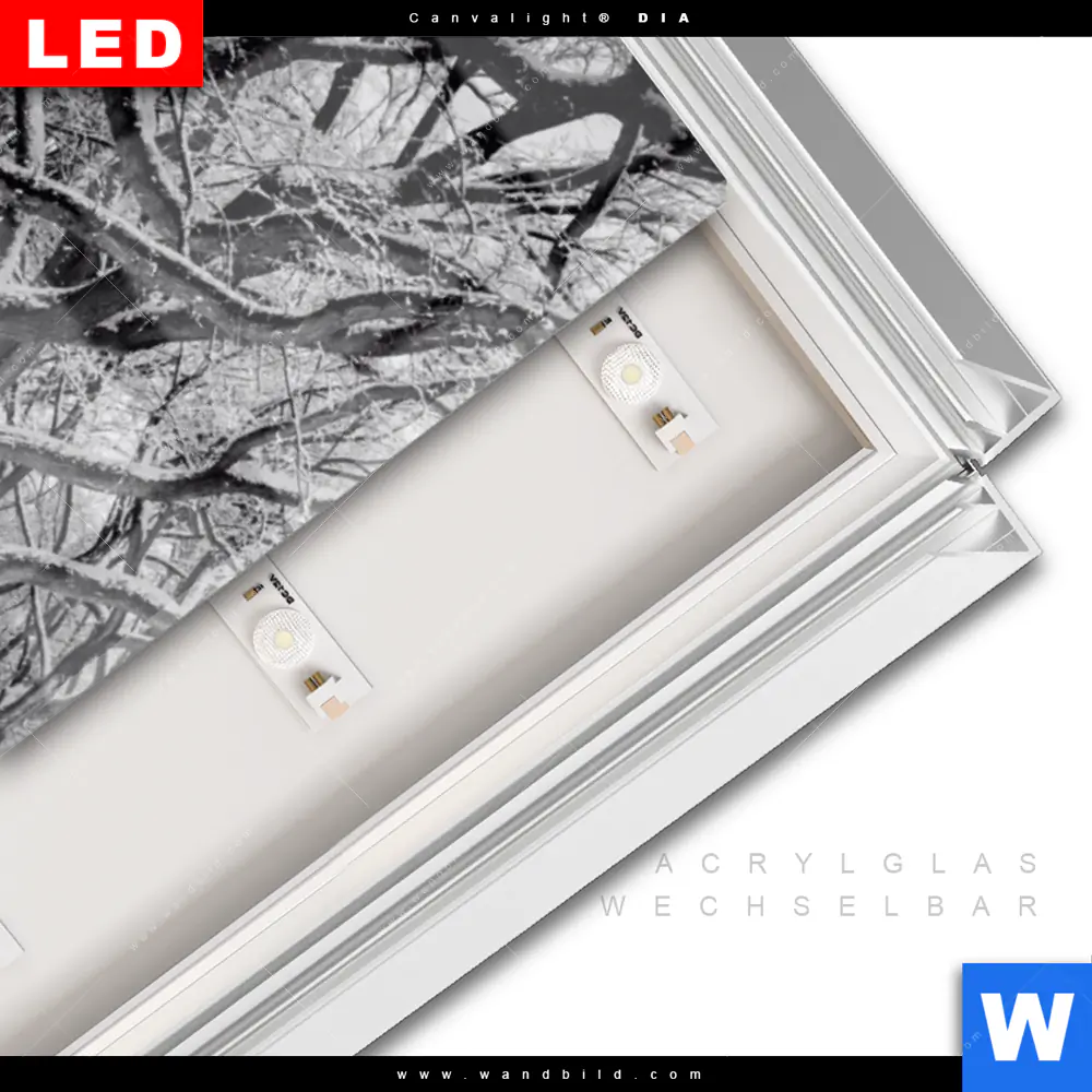 LED-Glasbild mit austauschbarem Acrylglas-Druck (Wechselbild)