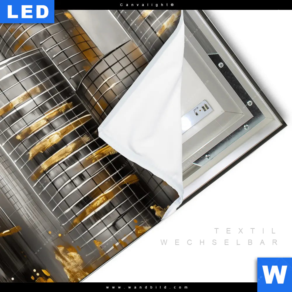 Canvalight® TEX Leuchtbild | Goldene Skyline Vision | Quadrat