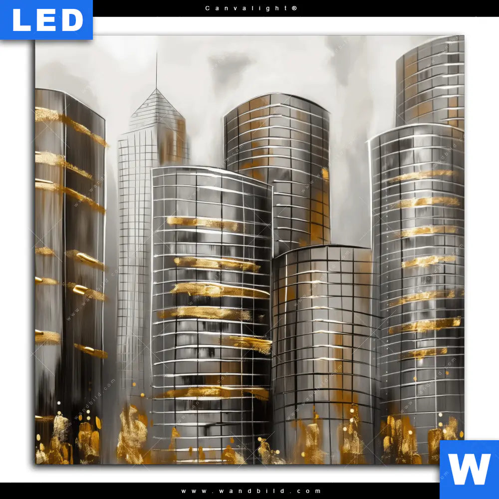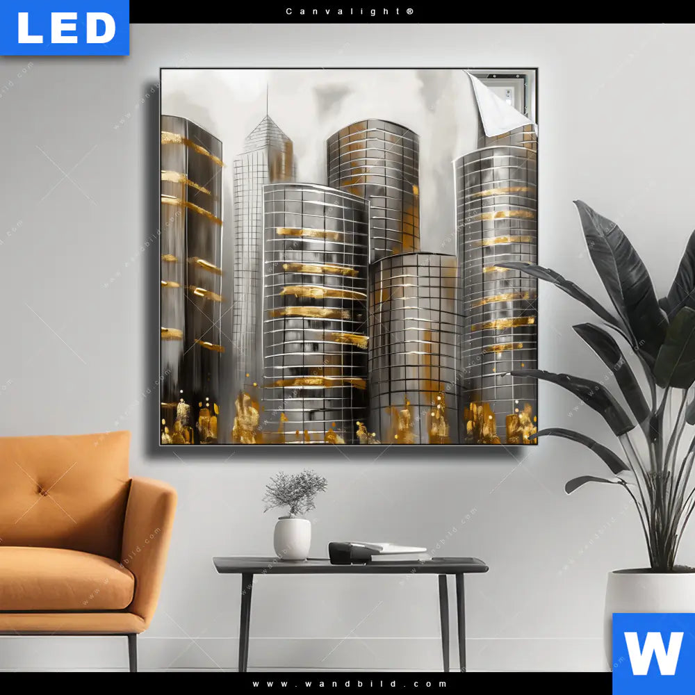 Canvalight® Leuchtbild | Goldene Skyline Vision | Quadrat