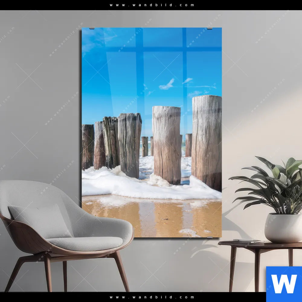 Acrylglasbild | Buhnen in Wellen am Strand | Hochformat