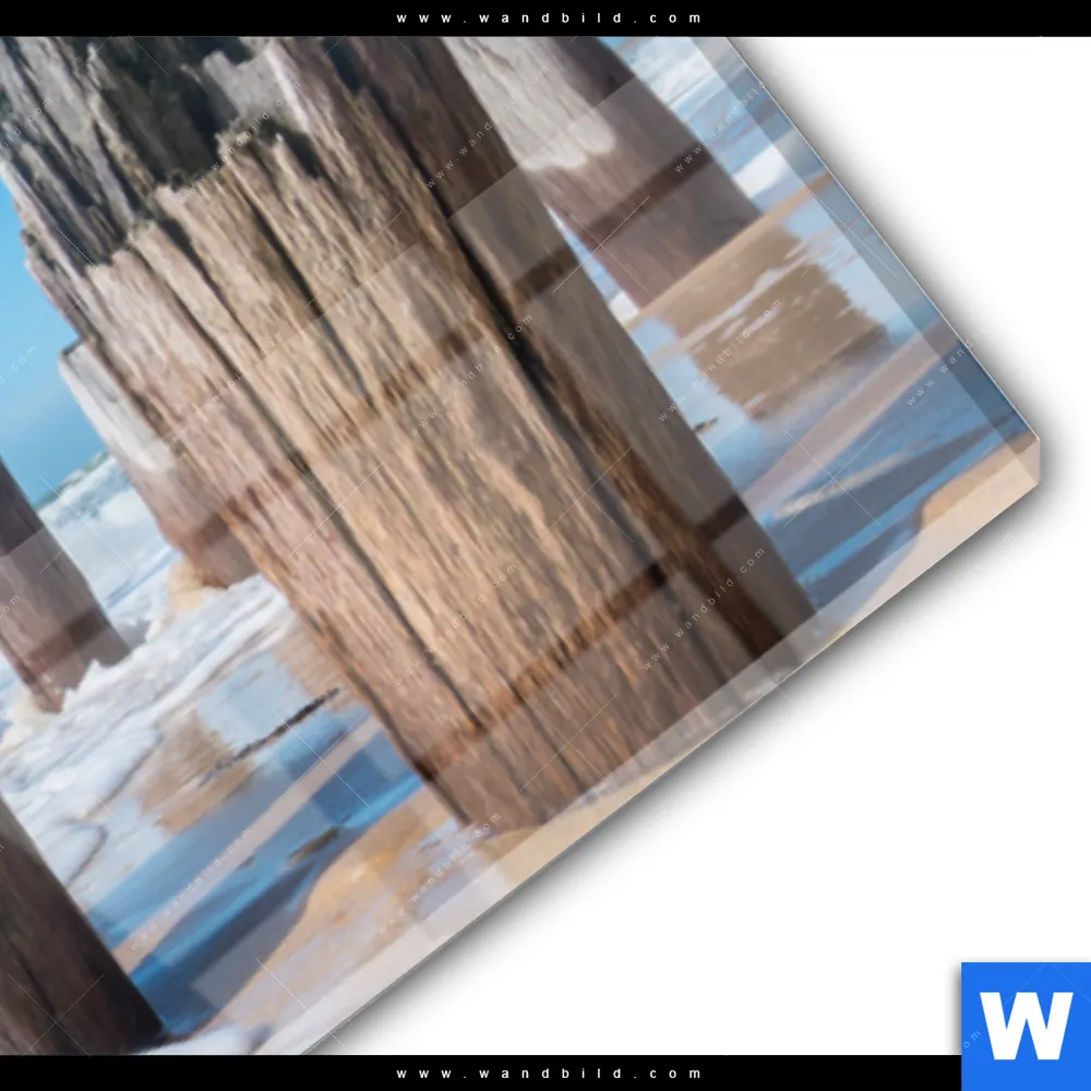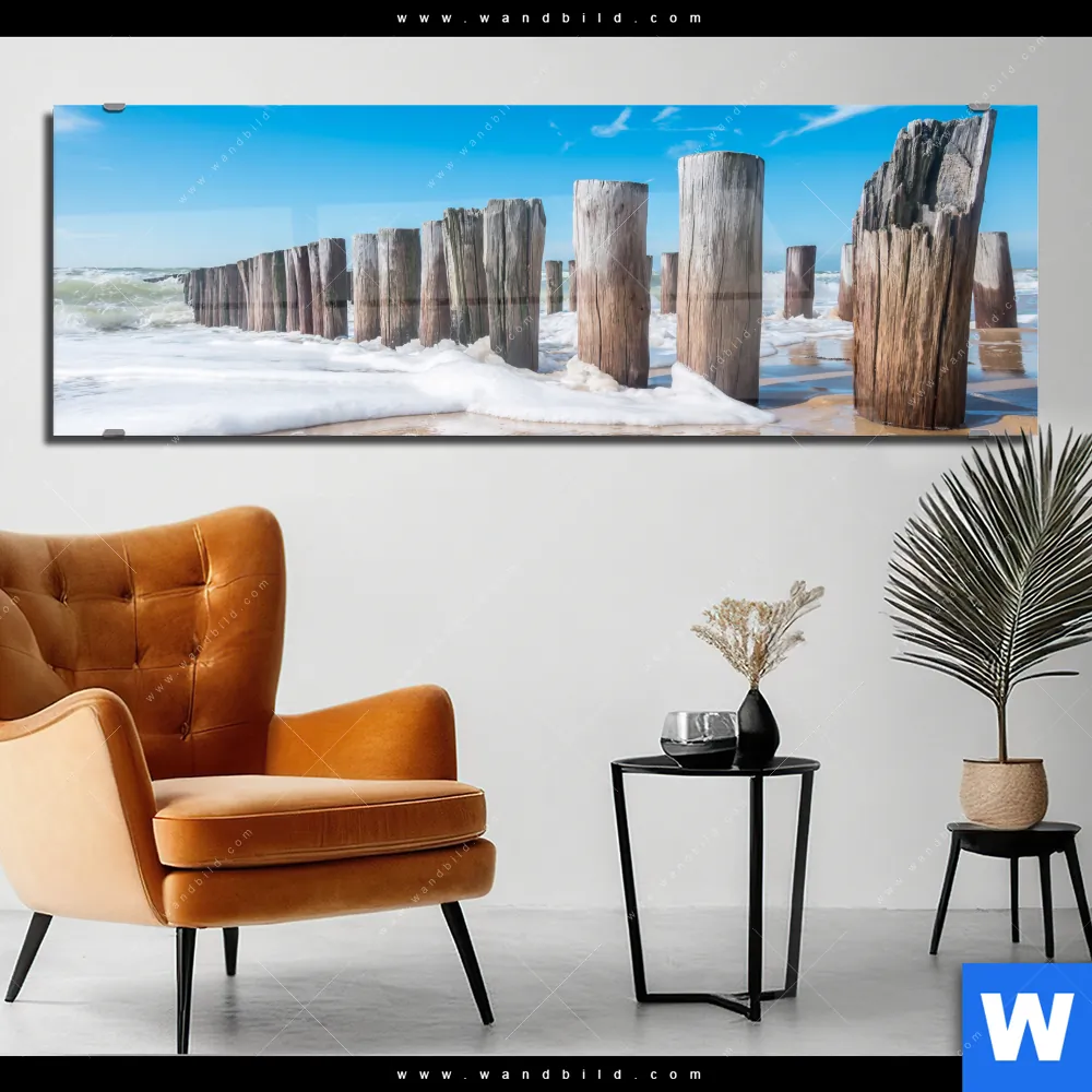 Acrylglasbild | Buhnen in Wellen am Strand | Panorama