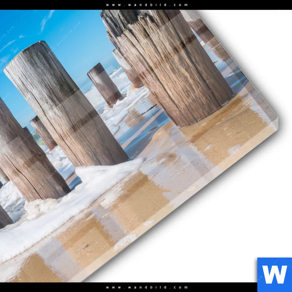 Acrylglasbild | Buhnen in Wellen am Strand | Quadrat