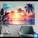 Acrylglasbild | Palmen bei Sonnenuntergang | Quadrat
