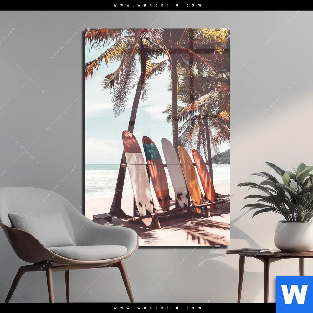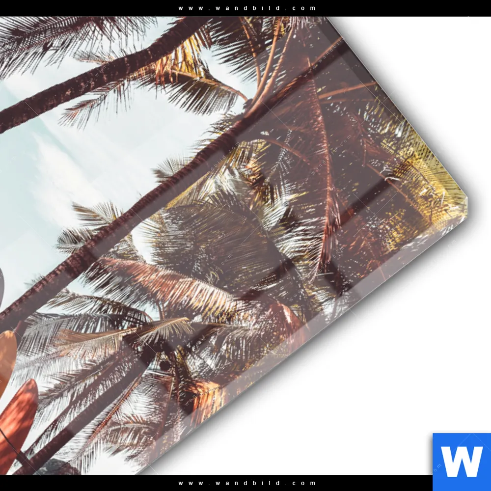 Acrylglasbild | Surfbretter und Palmen | Hochformat