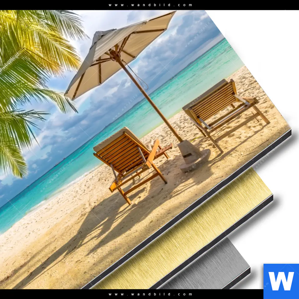 Strand - Meer, Landschaften Aluminiumbild mit metallischem Effekt inkl. vormontiertem Rückrahmen