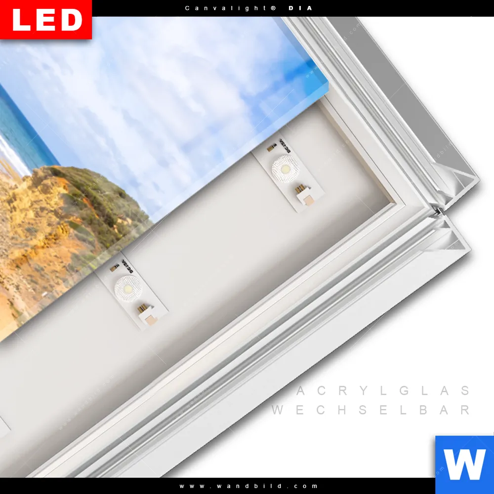 LED-Glasbild mit austauschbarem Acrylglas-Druck (Wechselbild)