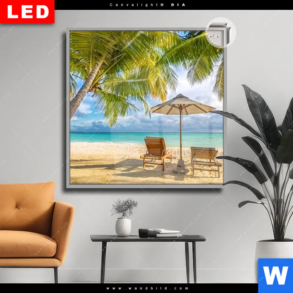 Canvalight® DIA Leuchtbild | Paradies unter Palmen | Quadrat