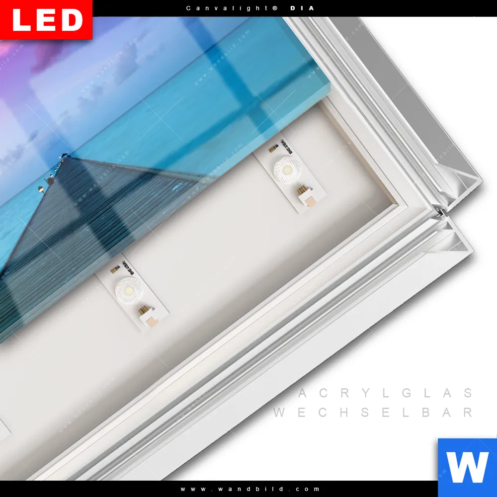 LED-Glasbild mit austauschbarem Acrylglas-Druck (Wechselbild)
