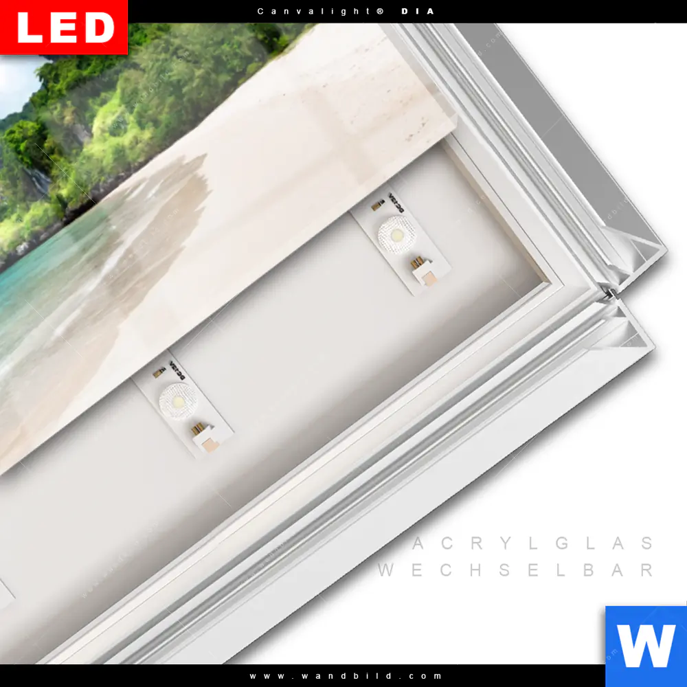 LED-Glasbild mit austauschbarem Acrylglas-Druck (Wechselbild)