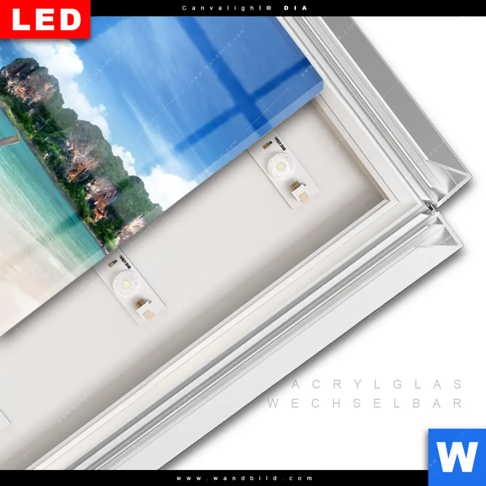LED-Glasbild mit austauschbarem Acrylglas-Druck (Wechselbild)