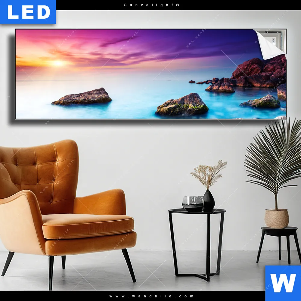 Canvalight® TEX Leuchtbild | Felsen im Meer | Panorama
